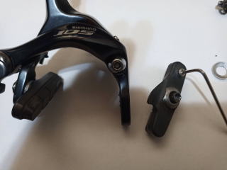 ブレーキシューの交換方法です 六角レンチでシュー本体を外します |
