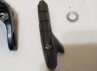 古いゴムパットを カートリッジから 外します 新しいゴムパットを 入れ ネジを閉めます アジャスターを緩めるか クリックリリースレバーをオープンにして ブレーキ本体に取付ボルトで軽く止めておきます |