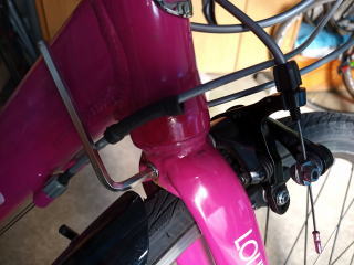 ブレーキ本体に取り付けて調整します ここでも便利な工具が有りますが アジャスターを緩めるか クリックリリースレバーをオープンにして 工具をフレームにあてがい ブレキーレバーを引いて ブレキーシューの位置決め 調整を行います 工具(ブレーキシューチュナー)な無いときは 目視確認で |